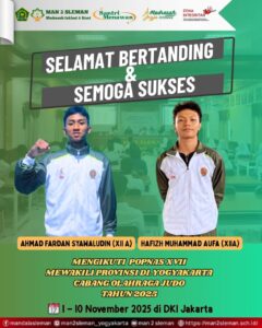 Sleman (MAN 2 Sleman) — Prestasi membanggakan kembali datang dari siswa MAN 2 Sleman. Dua atlet judo terbaik madrasah, Hafizh Muhammad Aufa (kelas XII A) dan Ahmad Fardan Syawaludin (kelas XII A), berhasil lolos untuk mewakili Daerah Istimewa Yogyakarta pada ajang bergengsi Pekan Olahraga Pelajar Nasional (POPNAS) 2025. POPNAS 2025 ini akan digelar pada 3-11 November 2025 bertempat di Gor Kelapa Gading Jakarta.
