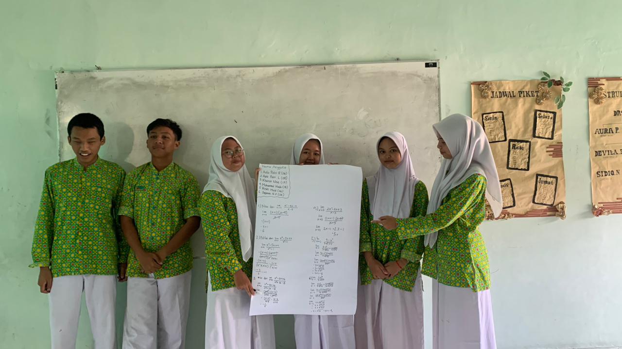 Kegiatan pembelajaran berlangsung dengan santai dan menyenangkan. Siswa kelas XI IPS I mengikuti pembelajaran dengan sangat antusias. Siswa dibagi menjadi beberapa kelompok. Kemudian setiap kelompok akan mendapatkan 3 soal limit fungsi aljabar. Mereka mendiskusikan soal tersebut dan menuliskannya di kertas plano. Terakhir mereka akan mempresentasikan hasil kerja kelompok mereka di depan kelas.