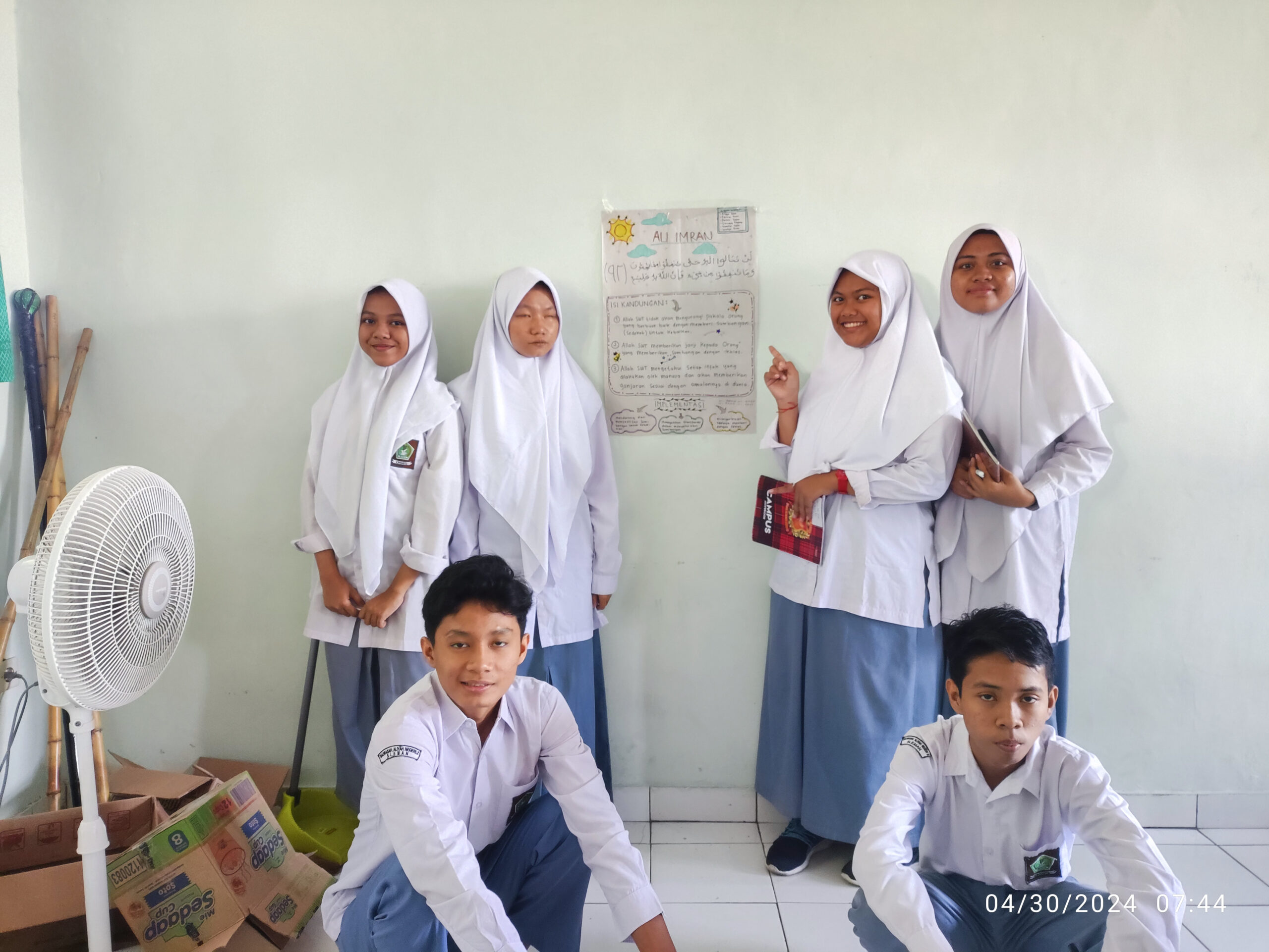 Kegiatan pembelajaran dilaksanakan pada Selasa (07/05/2024) bertepatan pada pelajaran pertama sampai kedua. Siswa dibagi menjadi kelompok-kelompok kecil dan akan mendiskusikan tema Berkompetisi dalam Kebaikan. Mereka akan membuat materi dengan menempelkan atau menuliskan pada kertas dan menjadi sebuah hasil karya kelompok. Setiap perwakilan kelompok akan berbelanja keliling melihat hasil karya kelompok lain. Mereka akan saling bertukar materi antara satu kelompok dengan kelompok lain. Siswa terlihat sangat antusias mengikuti pembelajaran di kelas.