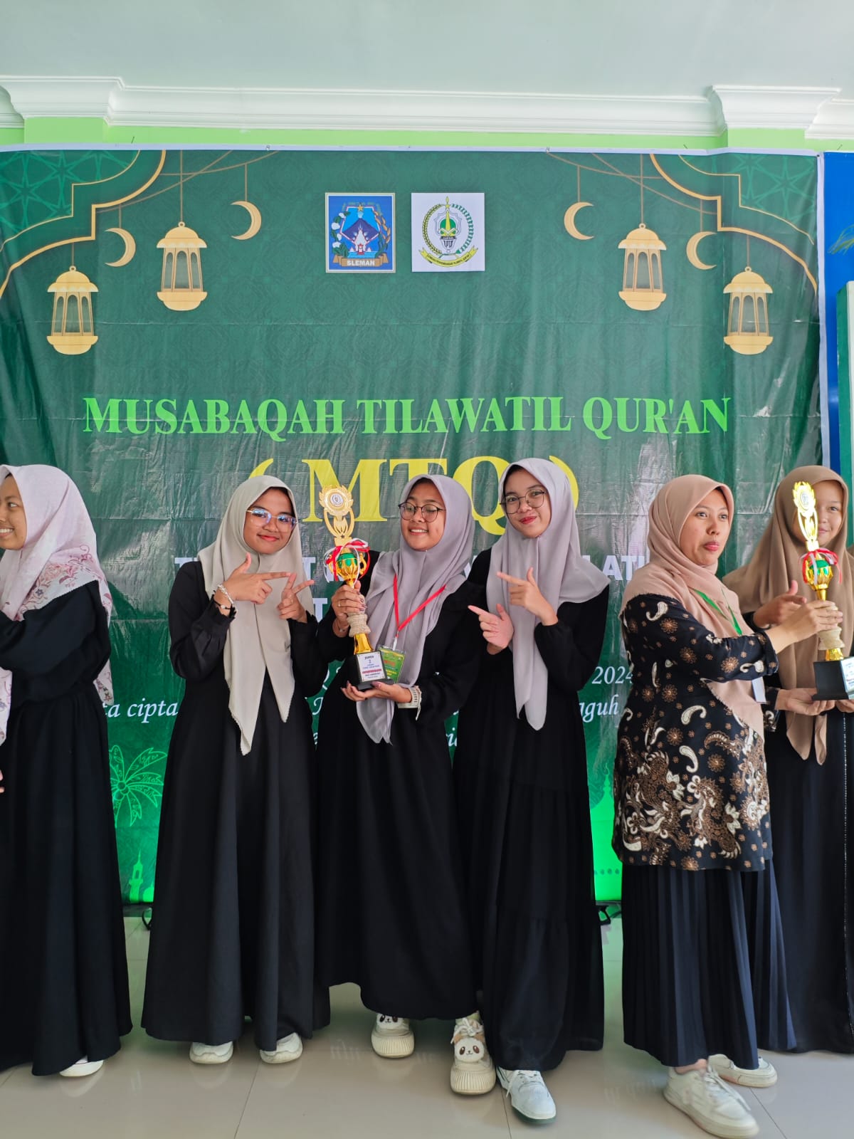 Juara 2 cabang MFQ putri diraih oleh Devina Anggraini (XII Keagamaan), Apta Subagyo (XI A), dan Aulia Putri (XII IPS 1)