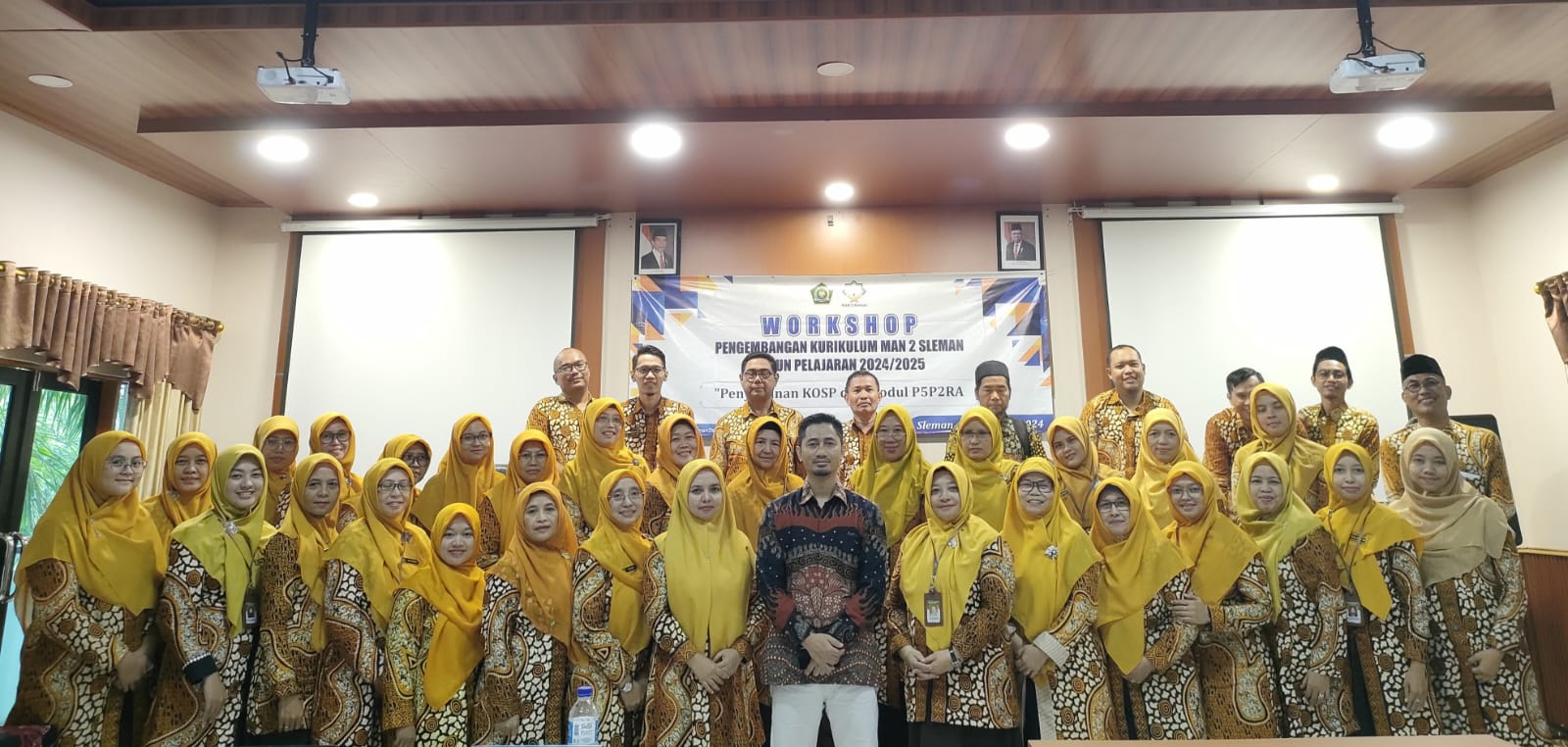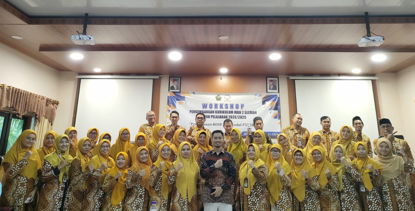 (Sleman-MAN 2 Sleman) Dalam rangka mengimplementasikan pelaksanaan Kurikulum Merdeka tahun pelajaran 2024/2025, MAN 2 Sleman menggelar workshop Pengembangan kurikulum pada Kamis (15/02/2024) guna meningkatkan kemampuan para guru agar dapat memahami dan mengimplementasikan Kurikulum Merdeka sesuai dengan konsep, strategi, dan karakteristik Kurikulum Merdeka baik dalam pembelajaran, penilaian, maupun manajemennya. Tema yang diusung pada workshop kali ini adalah Penyusunan KOSP (Kurikulum operasional di Satuan Pendidikan) dan Penyusunan Modul P5P2RA.