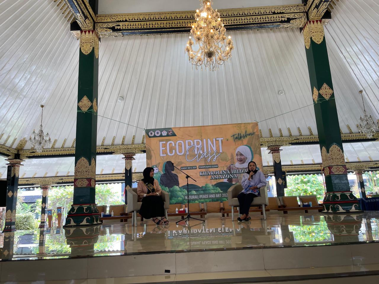 Hadir sebagai narasumber dalam kegiatan Talkshow, Nurul Baroroh, S.Psi dari Puspaga Kesengsem Sleman dengan tema Kesehatan Mental dan Kharolin Hilda Amazona dari Lead Curator Gitarjabhumi dengan materi Ecoprint. (Qoma)