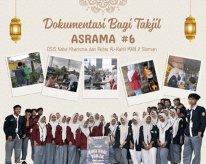 Sleman (MAN 2 Sleman) Pengurus OSIS Naba Kharisma MAN 2 Sleman bersama Rohis Al Kahfi MAN 2 Sleman melaksanakan kegiatan pembagian takjil kepada masyarakat di sekitar lingkungan MAN 2 Sleman. Kegiatan bagi takjil ini merupakan rangkaian dari kegiatan ASRAMA (Asyiknya Semarak Ramadhan). Kegiatan ini sebagai wujud semangat berbagi di Bulan Ramadhan. Kegiatan ini terlaksana pada Rabu (3/6/2026) menyasar para pengguna jalan serta warga sekitar yang masih beraktivitas menjelang waktu berbuka puasa.
