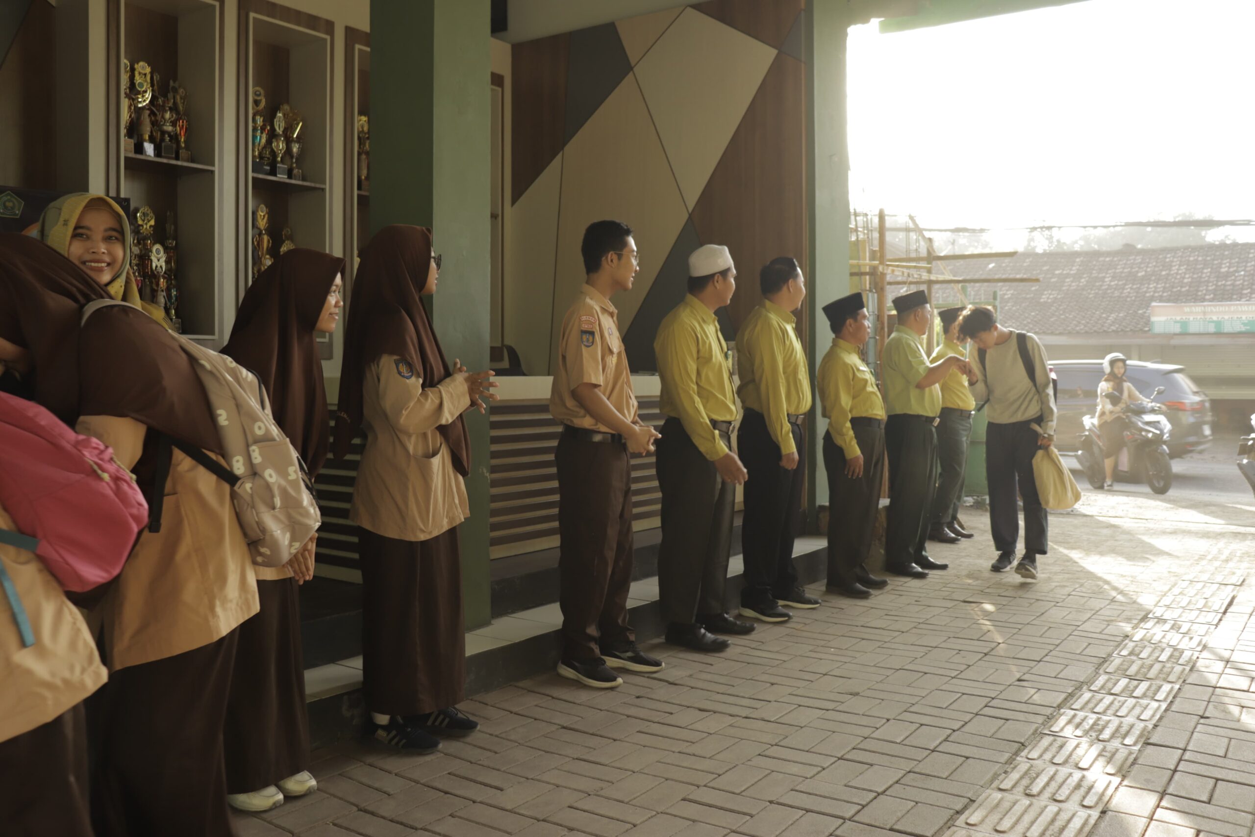 MAN 2 Sleman – Untuk menyambut kedatangan siswa dan guru di pagi hari, sahabat inklusi turut jalankan program Sesapaan pada hari Rabu (15/18/2024) di depan gerbang madrasah. Budaya 5S (Senyum, Salam, Sapa, Sopan, Santun) dan memberikan bantuan kepada teman difabel netra merupakan kegiatan rutin tiap pagi yang dilaksanakan pada hari Senin hingga Jumat.