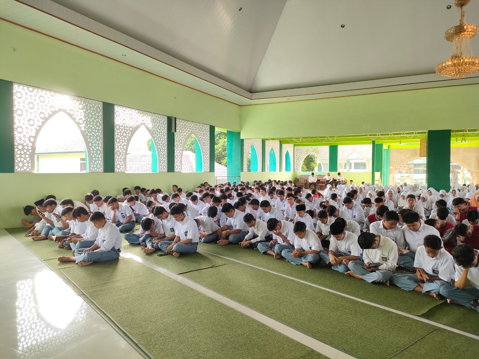 Kegiatan sima’an dilaksanakan di masjid Baitul Muta’allimin dengan dipandu oleh koordinator Keagamaan Muhammad Badruddin, S.Ag. Masing-masing siswa dengan khusyuk menyimak bacaan alqur’an yang dilantunkan oleh Titin Khaeriyah (XII IPS) dan Apta Subagyo (XI).